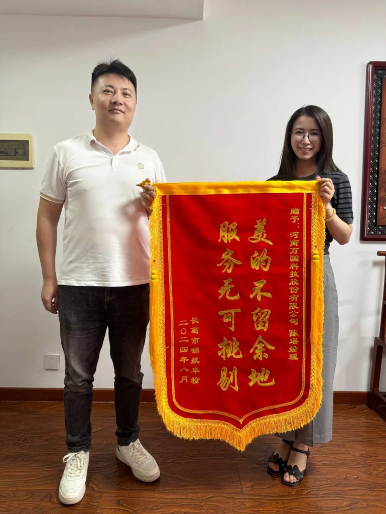 8月的天气依然很炎热,长葛市锦航车检王总专程从许昌到公司向陈瑶经理表达谢意,王总说道:“陈经理在检测站建站过程中给与了非常大的帮助,九州ku酷游设备靠谱,九州ku酷游的服务更靠谱!真诚永远是必杀技,九州ku酷游真正践行了保姆级服务,有专业的市场经理在,每次遇到问题都能得到圆满解决!”王总对九州ku酷游陈瑶经理的帮助屡次表达感谢之情。
